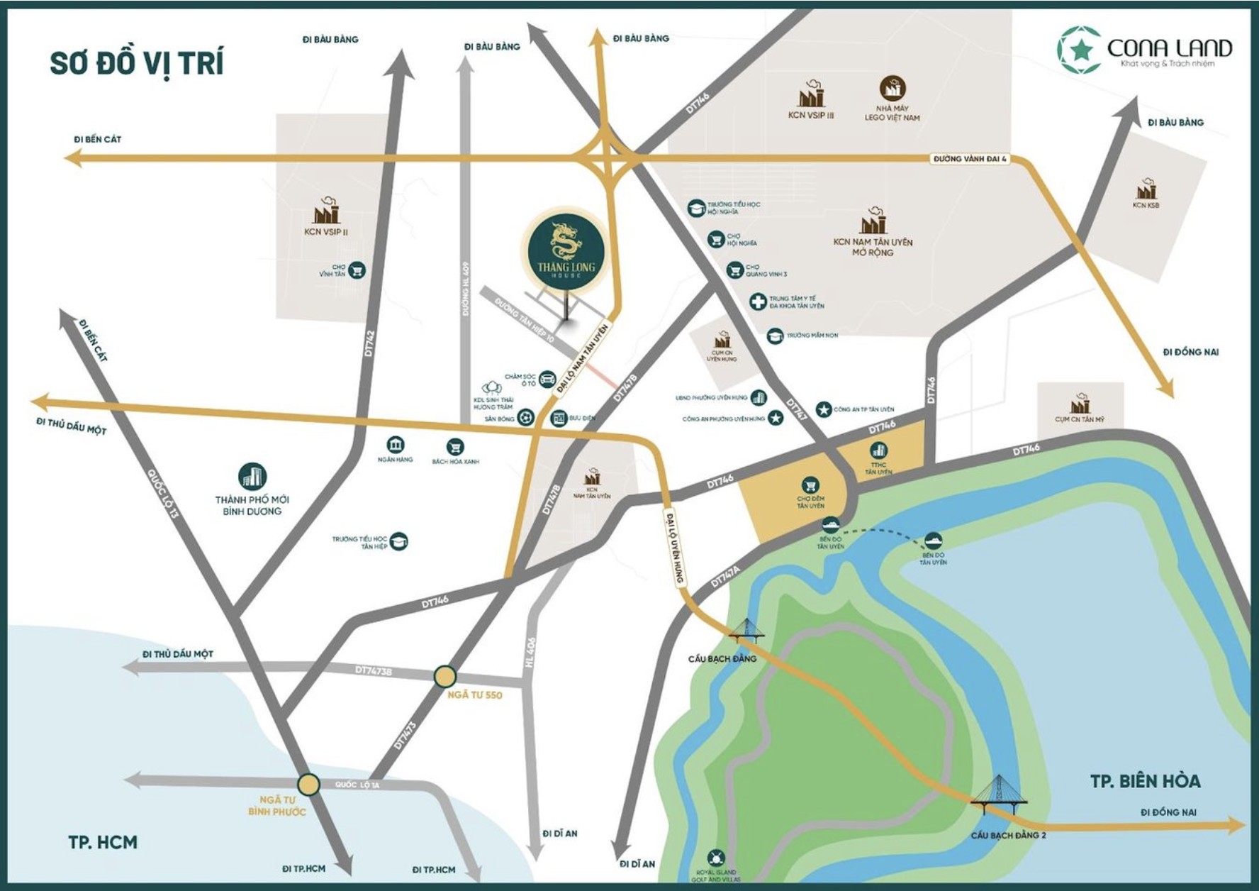 Không chỉ sở hữu vị trí kết nối chiến lược, Thăng Long House còn nằm giữa tứ giác khu công nghiệp trọng điểm của Bình Dương, bao gồm: