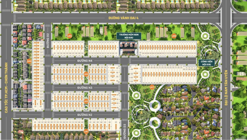 Tất cả được quy hoạch bài bản theo tiêu chuẩn khu dân cư hiện đại, hướng đến một cộng đồng văn minh – kết nối – an toàn.